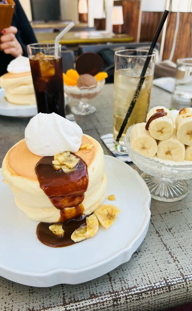 パンケーキ食べながら
